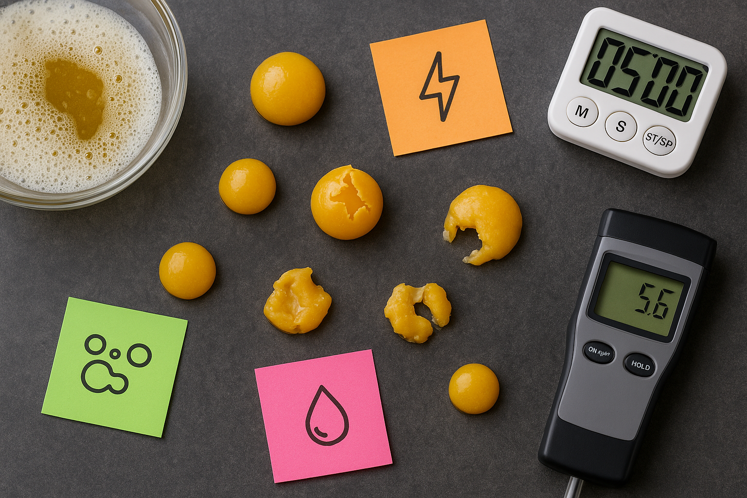 Diagnóstico rápido con soluciones concretas para que tus esferas salgan limpias, estables y sabrosas.