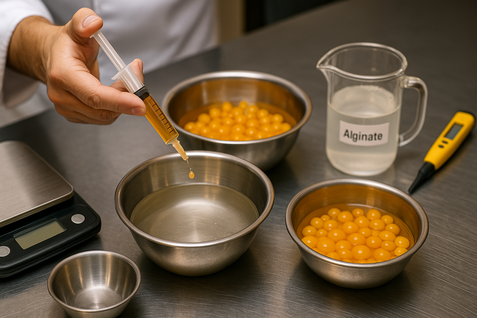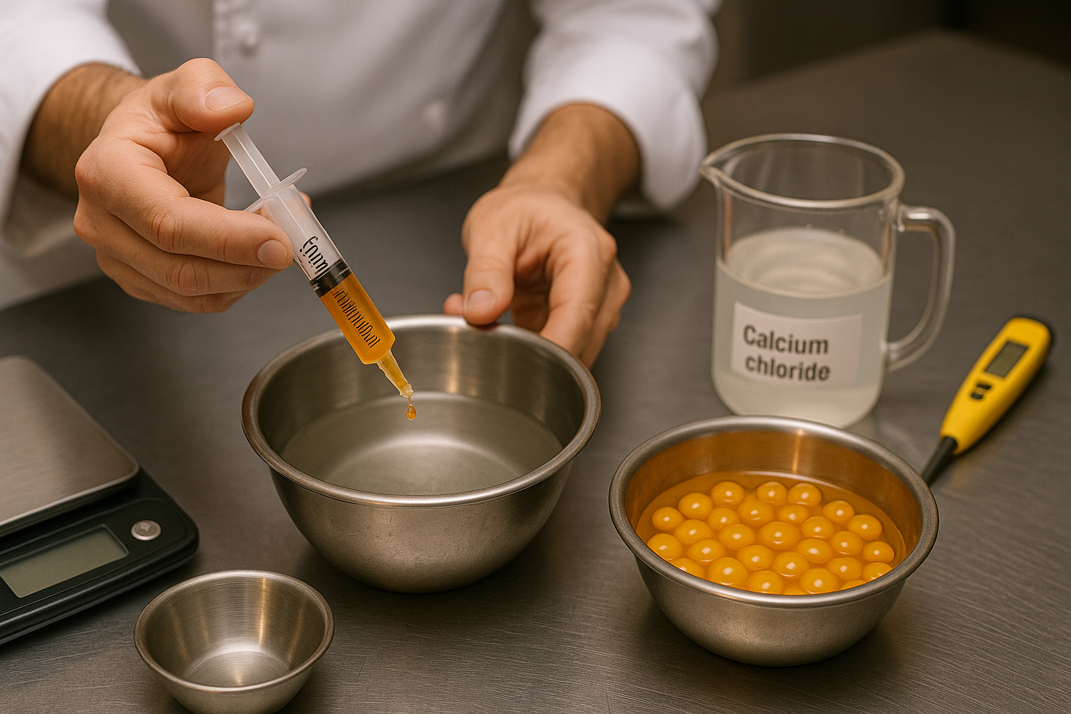 Aprende a crear esferas con núcleo líquido para postres modernos. Esta guía te enseña proporciones base, control de pH y una metodología reproducible para resultados consistentes.